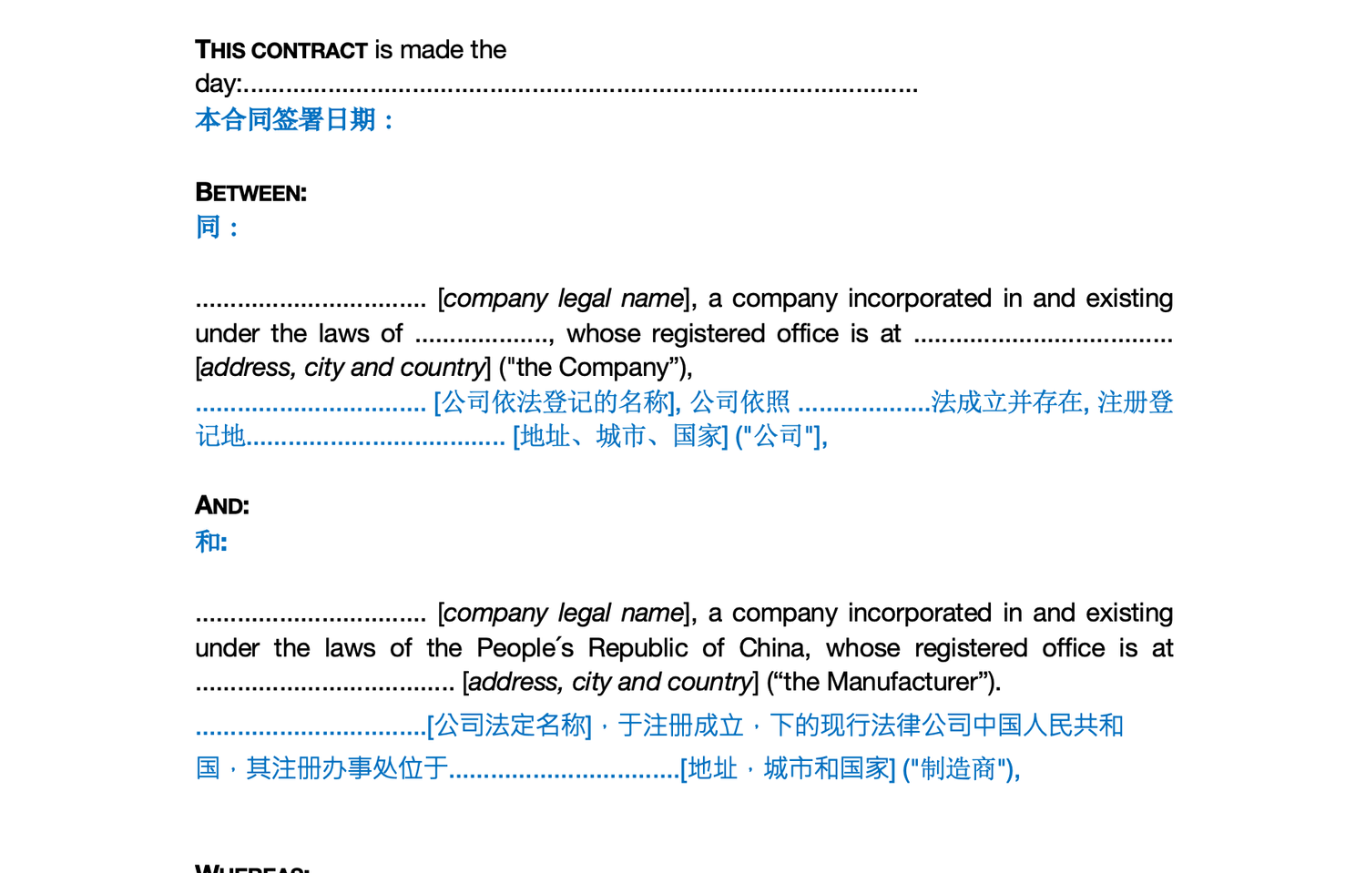 Please enter your email below to buy a copy of our Chinese English Manufacturing Contract for only $99!